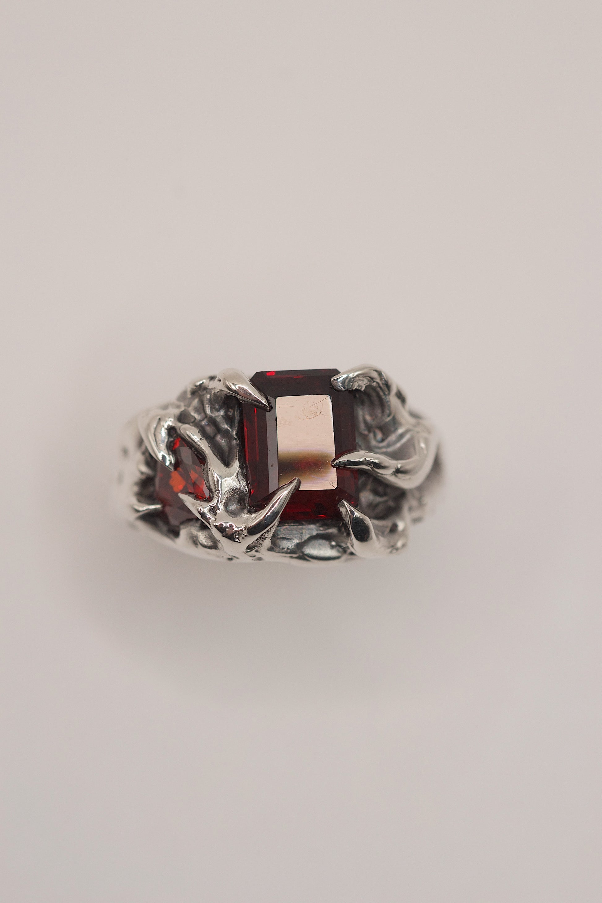 Gemstones: 6x8mm red lab-grown garnet. 5mm red heart cubic zirconia.